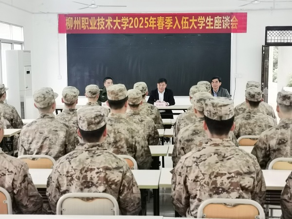冉福松首先对穿上军装保家卫国的同学们表示祝贺。随后从练强体质,打牢军旅生涯的坚实基?。皇┱共呕?,在军队大舞台绽放青春;感恩母校,关注柳职大,频传捷报等三个方面与同学们座谈交流。冉福松希望同学们做忠诚卫士,把柳职大人“听党话、跟党走”的红色基因融入军魂;做精武标兵,将课堂上的精益求精转化为练兵场上的克敌制胜;做时代尖兵,在信息化战场展现柳职大人的技能优势。