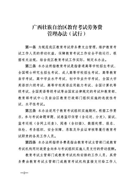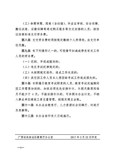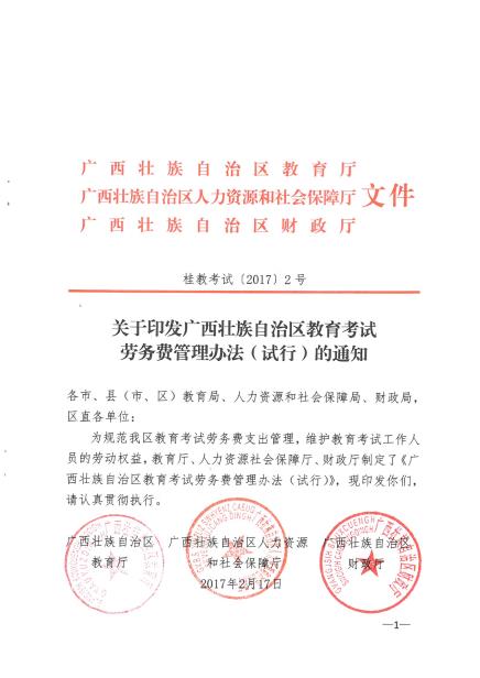 桂教考试【2017】2号 关于印发广西壮族自治区教育考试劳务费管理办法(试行)的通知