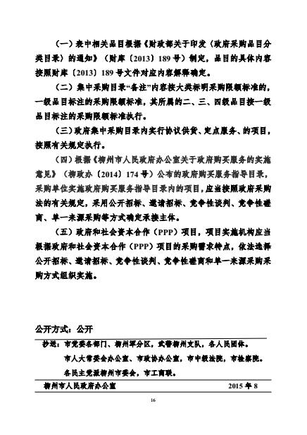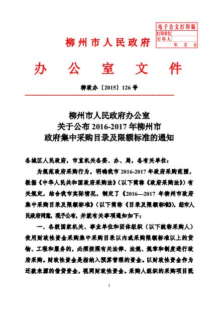 柳政办【2015】126号 关于公布2016-2017年柳州市政府集中采购目录及限额标准的通知 来源: 发布时间:2017-05-03 20:13:00 浏览次数: 次 【字体:小 大】 (2017/4/25) 点击:12 关闭 分享到: 【打印正文】