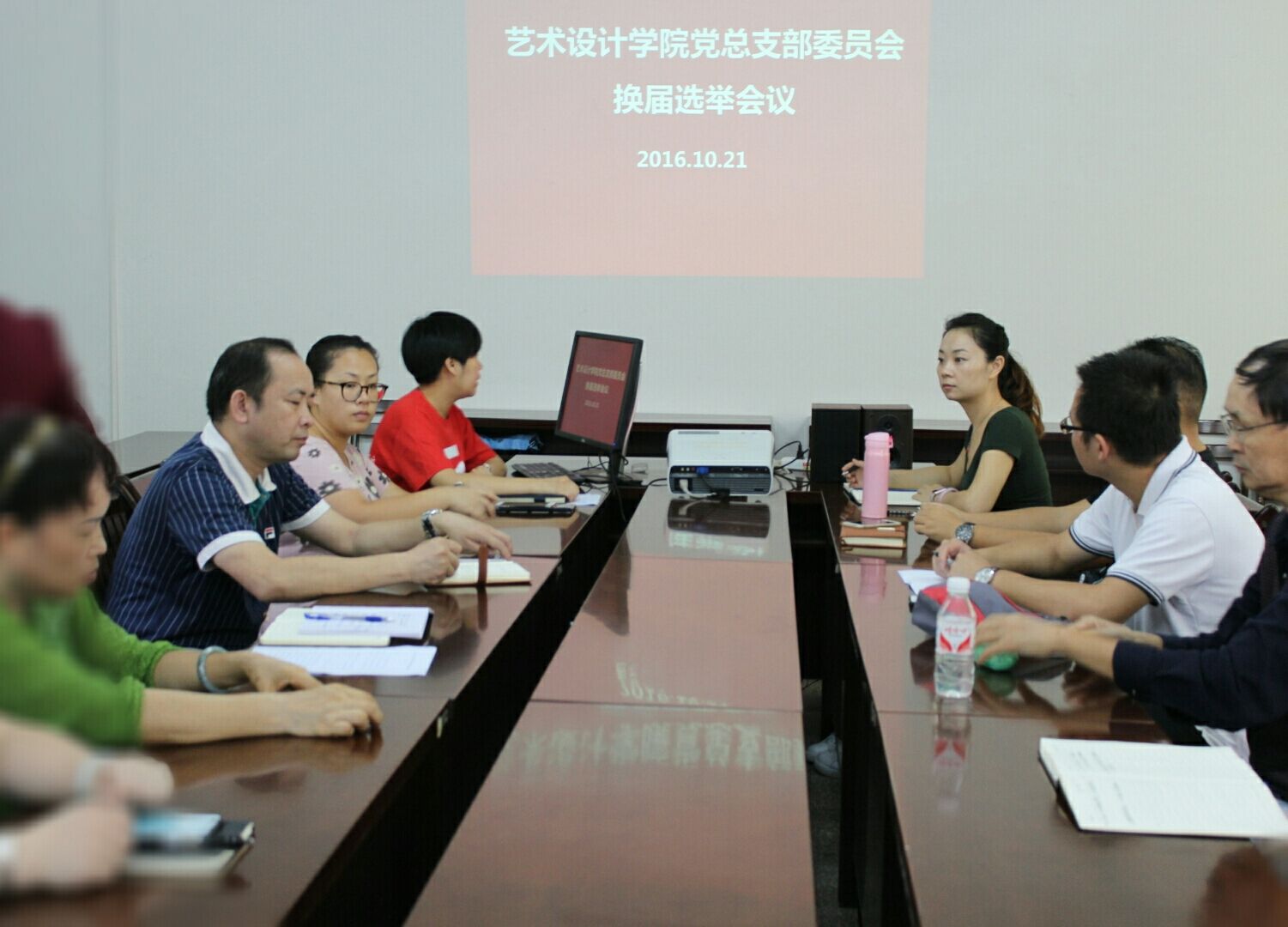 新闻网消息(文/艺术设计系 王慧、廖美暖 图/艺术设计系 廖美暖、白兰)2016年10月21日下午,艺术设计学院党总支部全体党员在艺术校区1号楼203会议室举行新一届党总支部委员换届选举大会?;嵋橛裳г旱匙苤榧峭趸壑鞒?,选举产生了新一届党总支9名委员。随后,召开了学院党总支部新一届全体委员大会,王慧同志当选为党总支书记,并就其他委员作出了分工安排。 2016年10月28日上午,该院党总支教工党支部在艺术校区1号楼203会议室召开支部党员大会。大会由总支部组织委员廖美暖主持,选举产生了新一届教工支部5名委员。随后召开了新一届支部委员会全体大会,朱裕同志当选为支部书记,并就其他委员作出了分工。 当日下午,该院党总支学生党支部在艺术校区1号楼203召开支部党员大会。大会由上一届党支部书记白兰主持,选举产生了新一届学生支部3名委员,随后召开了新一届支部委员会全体大会,白兰同志当选为支部书记,并就其他委员作出了分工。 会后,教工党支部和学生党支部分别向党总支部提交了该院党总支部委员会换届选举结果的报告。党总支部严格审核选举程序和结果,经研究决定,同意两个支部的选举结果,并分别下达了批复意见。至此,艺术设计学院党总支部及各基层党组织换届选举工作圆满完成。总支部将如实向学校党委汇报。新一届党总支部及下一级党组织委员会,将按照确立的工作任务和工作目标,增强责任感和使命感,充分发挥基层党组织的战斗堡垒作用和党员的模范带头作用,以改革创新的精神投入到学院建设发展的各项工作中去。