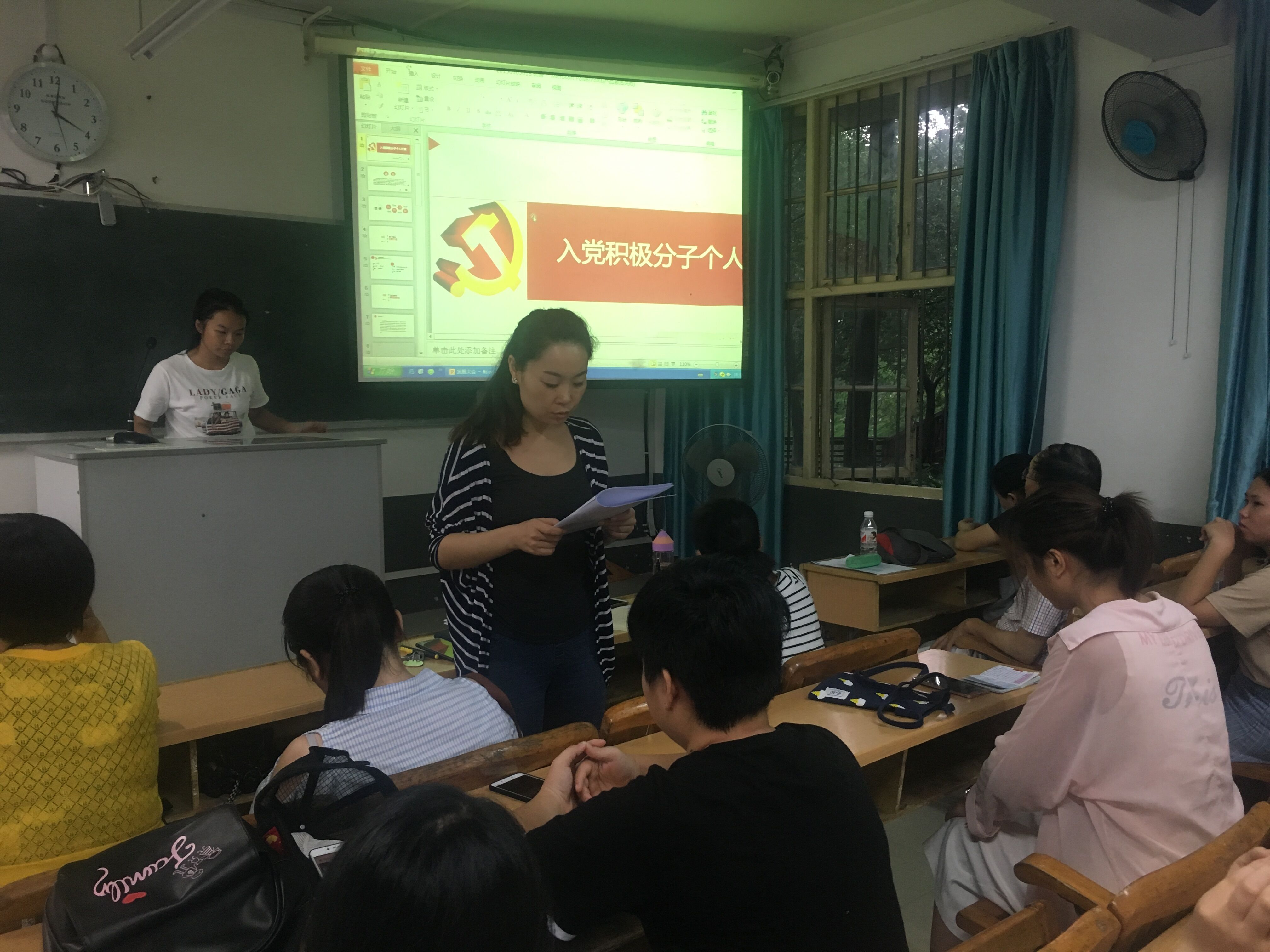 发展大会由学生支部书记白兰主持,她首先介绍了一年来,20名拟发展的培养对象表现情况,以及发展大会的严格流程。大会第二项,20名来自2015级的优秀入党积极分子从自我介绍,思想、学习、生活方面,以及今后努力方向三个方面阐述自己的汇报。每一位积极分子汇报结束后,2名入党介绍人分别宣读入党介绍词。所有汇报结束后,学生支部党员对每一位即将发展为党员的同志进行投票,20名入党积极分子全票通过,报上级党组织批复后,就为中国共产党预备党员