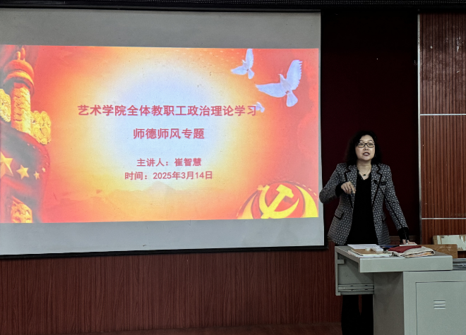 新闻网消息(文、图/艺术学院 杜昕)2025年3月14日,艺术学院在德馨楼101教室召开全体教职工政治理论学习会议,师德师风专题学习?;嵋橛梢帐跹г旱匙苤榧谴拗腔壑鞒郑г喝褰讨肮げ渭友?。