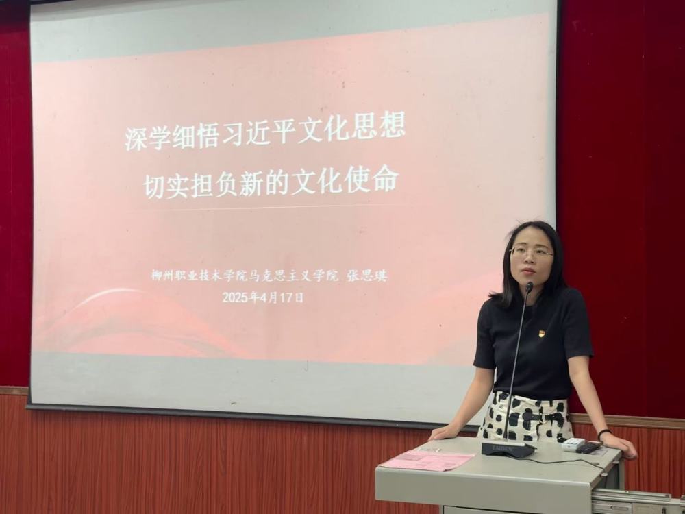新闻网消息(文、图/艺术学院 杜昕)2025年4月17日,艺术学院分党校在德馨楼101教室开展入党积极分子培训班党课学习,主题为“深学细悟习近平文化思想,切实担负新的文化使命”。此次党课邀请马克思主义学院专任教师张思琪担任主讲,旨在加强入党积极分子对习近平文化思想的理解和认识,提高他们在新时代文化建设中的责任感和使命感。