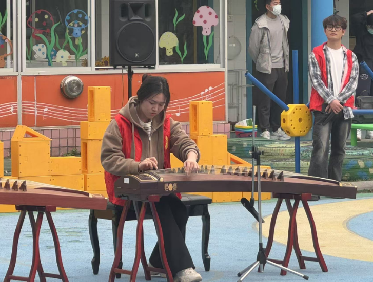 新闻网消息(文、图/艺术学院  杜昕)2025年3月21日,艺术学院党总支组织师生志愿者前往龙擎社区柳机幼儿园,为孩子们带来古筝表演,以及开展了一场别开生面的滴染志愿服务活动。通过艺术欣赏、艺术创作与互动体验,为孩子们带去了欢乐与美的熏陶。