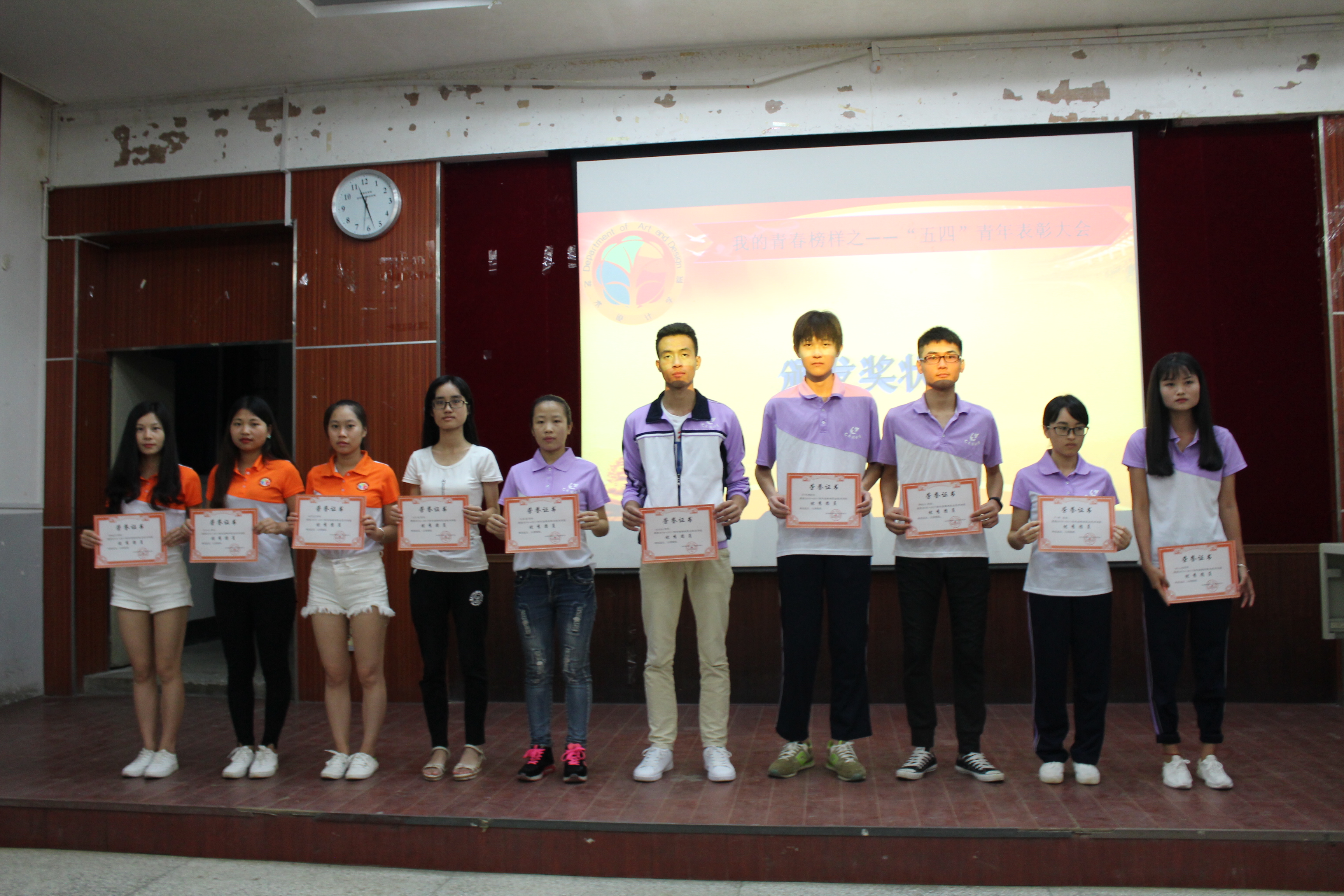 新闻网消息(文/艺术设计学院 车孟霞 图/艺术设计学院 韦鹏飞)2017年6月19日晚上7点30艺术设计学院团委学生会在德馨楼101教室举办2016——2017学年“我的青春标杆”之“五四青年”总结表彰大会,艺术设计学院分团委书记覃晓晨老师出席,张枝高同学主持,各班级代表、优秀团干部、优秀团员代表参加。