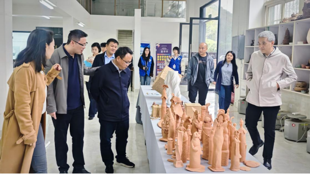 在陶瓷艺术研发应用中心,赵副局长详细了解了陶艺实训工作室的建设情况。艺术学院通过引进先进制窑设备,建立了具有广西特色的陶艺设计实训空间,推动“结合地区优势,打造民族特色小产品设计”从理论走向实践。实训工作室在满足教学需求的同时,积极服务社会,为陶艺人才培养和地方文化建设提供支撑。