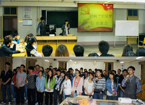 2013年4月—6月,艺术设计系成功开展了以“中国梦,我的梦”为主题的系列活动:学习中国梦、畅想中国梦、唱响中国梦、共话中国梦、见证中国梦、践行中国梦、梦想接力等,同学们积极参与到系列“梦”活动中,激发了远大理想和为实现“中国梦”而团结奋斗的信心,思想得到了净化、升华和洗礼。 学习“中国梦”:2013年4月19日,艺术设计系党支部书记梁毅在艺术校区1-210教室举行了“民族复兴与中国梦”讲座,艺术系近80名入党积极分子到场聆听,梁书记宣讲了对中国梦的时代解读、中国梦的本质内涵、中国梦的历史进程以及实现中国梦目标的“三部曲”和实现中国梦途径的“三必须”。 讲座结束后入党积极分子通过网络和书本学习和理解“中国梦”,认识到实现中华民族伟大复兴是中华民族近代以来最伟大的梦想,每个人的前途命运与国家和民族的前途命运紧密相连,从而自觉地把“个人梦”融入“中国梦”。 畅想“中国梦”:2013年4月24日,“实现中国梦,青春勇担当”的主题座谈会在艺术校区1-110教室举行,入党积极分子展开了个人梦想与国家希望的大讨论:“中国梦,成才梦——道德、励志、成才”,艺术设计系学生科科长阎志斌老师主持座谈。 “没有行动,梦想便是空想,中国梦、青春梦需要我们每个青年仰望星空和脚踏实地方能成真!”“青春的可贵不在于年轻,而在于能在风华正茂时怀揣梦想去奋斗?!蓖欠追追⒀裕富崞杖攘?,阎志斌老师鼓励大家勇于播种梦想,点燃青春,敢于有梦、勇于追梦、勤于圆梦,为实现中国梦汇聚强大的青春能量。 唱响“中国梦”:“聚合青春正能量,唱响幸福中国梦”红歌活动于2013年4月26日在艺术校区1-110教室举行,歌曲接龙、抢唱红歌、红歌背景问答、红歌大合唱等活动激发起同学们浓浓的爱国情怀,穿插其中的知识问答及小游戏让现场气氛庄重肃穆又不失活跃,反映中国发展的一系列红色歌曲不仅歌颂了同学们对祖国母亲的热爱,更激发了同学们为祖国奋斗不息的蓬勃斗志。百余名2012级入党积极分子参加了本次活动。 2013年6月4日晚上,艺术设计系2013届音乐表演专业毕业生韦曼妮、覃凤英、陈俊州在艺术校区音乐表演厅举行“中国梦,我的梦”毕业独唱音乐会,用美丽的歌声赞美祖国、感恩幸福生活和寄语未来人生梦! 共话“中国梦”:2013年5月24日,“扬帆启航?巾帼共筑‘中国梦’——先进性别文化暨优秀成功女性进高?;疃痹谝帐跎杓葡稻傩惺壮』疃?,来自全市社会各界的8位优秀成功女性与近200名学生面对面交流,畅谈人生经历,分享成功感悟,传播先进性别文化,为大学生们成才励志导航。通过活动同学们获得了自信自强的正能量,激发起奋发向上的动力,纷纷表示要树立人生理想,练就过硬本领,用青春的梦想成就中华民族伟大复兴的“中国梦”。 见证“中国梦”: 2013年4月21日,入党积极分子在艺术校区1-210教室观看了红色电影《钱学森》,观看之前播放了2007年钱学森被CCTV感动中国评为年度人物时组委会授予他的颁奖词:“在他心里,国为重,家为轻,科学最重,名利最轻。5年归国路,10年两弹成??醋婀教?,他是先行人,劈荆斩棘,把智慧锻造成阶梯,留给后来的攀登者?!鼻陌?、坚定信念和创新精神深深触动着同学们的心灵,也让同学们见证了“中国航天梦”。 2013年5月18日,艺术设计系党支部组织百余名2011、2012级入党积极分子在柳州工业博物馆开展“回顾工业发展历史,描绘未来中国梦”的主题活动,同学们参观了柳州工业一百年的发展历程后感慨万分:“感觉进了时光机,呼呼地走过了好几个年代,然后再回到科技发达的现代,柳州的变化太大了!”“改革开放是柳州发展的强大推动力,艰苦奋斗、自主创新的‘柳州精神’是实现‘柳州工业梦’的支柱!”同学们从百年柳州“工业梦“中感受到了力量和自豪,对祖国的未来和自己的前程充满了信心。 践行“中国梦”:艺术设计系青年志愿者开展清洁校园、服务社区、服务柳州市科技活动周等活动,入党积极分子以?;せ肪?、弘扬美德为主题,举行公益广告设计比赛、手机拍客摄影比赛、公益广告词比赛,同学们用青春汗水努力践行 “中国梦”。 2013年5月24日艺术设计系学生会组织开展了“我的中国梦,从美丽校园做起”的夏日美化校园活动,同学们拿着扫帚、铲子等工具清理着牛皮癣小广告和垃圾,把校园的卫生死角打扫得干干净净。 “梦想接力”:2013年5月30日,艺术设计系拉开了“梦想接力”活动的序幕,艺术设计系全体学生参与,写下自己的格言和理想,每个班级搜集集体照片、精彩的活动照片编撰成梦想接力的册子,系团委将喷绘制作成“梦想接力”的宣传栏,活动将持续两周。 通过“中国梦”系列活动,让该系每个人都成为“梦之队”的一员,都成为实现“中国梦”的参与者、书写着和践行者。(文/阎志斌、覃静 图/何敏杰)