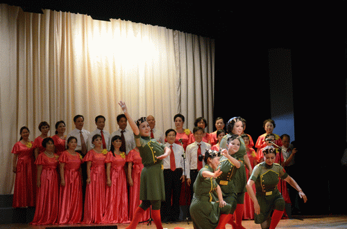 新闻网消息(通讯员/艺术设计学院 黄芳 图/艺术设计学院 蒙政光、黄耀军)为迎接中国共产党95华诞,全面落实我?!傲窖б蛔觥毖敖逃螅?月24日下午,艺术设计学院在艺术校区音乐表演厅成功举办“永远跟党走”庆祝建党95华诞暨柳职艺培中心-来宾市老年大学联谊演出活动。出席活动的有院长李革、学院书记王慧、副院长雍佳等领导,该院全体师生观看了演出。 联谊会节目形式多样,内容丰富多彩,有歌伴舞、女声小组唱、男女声小合唱、舞蹈、合唱等15个节目。联谊会在舞蹈《壮乡山歌美,唱出柳州好风光》中拉开序幕。随后,一首首熟悉的旋律在耳畔唱响,一段段不朽的旋律将记忆唤醒。舞蹈《茉莉花》的舞者运用细腻的肢体动作和丰富的舞蹈语汇,表现了中国民歌精品多姿多彩的风韵,展示了茉莉花开时的洁白无瑕、吐露芳香时的美妙,展示了民族文化内涵。合唱歌曲《祖国万岁》、《眷恋》充分表达了各族儿女对祖国的忠诚与热爱?! ? 95年,弹指一挥间。进入新世纪以来,中国和平发展的步伐越来越快,中国特色社会主义道路越走越宽广,“雄伟是山的梦,宽阔是海的梦,蔚蓝是天的梦,幸福是百姓梦,鲜花是春天的梦,翱翔是雄鹰的梦,远航是帆的梦,强盛是中国梦......”歌曲《共筑中国梦》将演出活动推向高潮,获得观众阵阵掌声。 联谊会在合唱歌曲《把一切献给党》激昂雄壮的音乐声中落下帷幕。 整场联谊会主题突出、内容丰富、形式多样、气势宏大,具有强烈的时代精神与鲜明的艺术特色,歌颂了党的丰功伟绩和伟大的祖国,深切表达了联谊双方对祖国和党的无限热爱之情,展现了艺术设计学院的良好风貌。