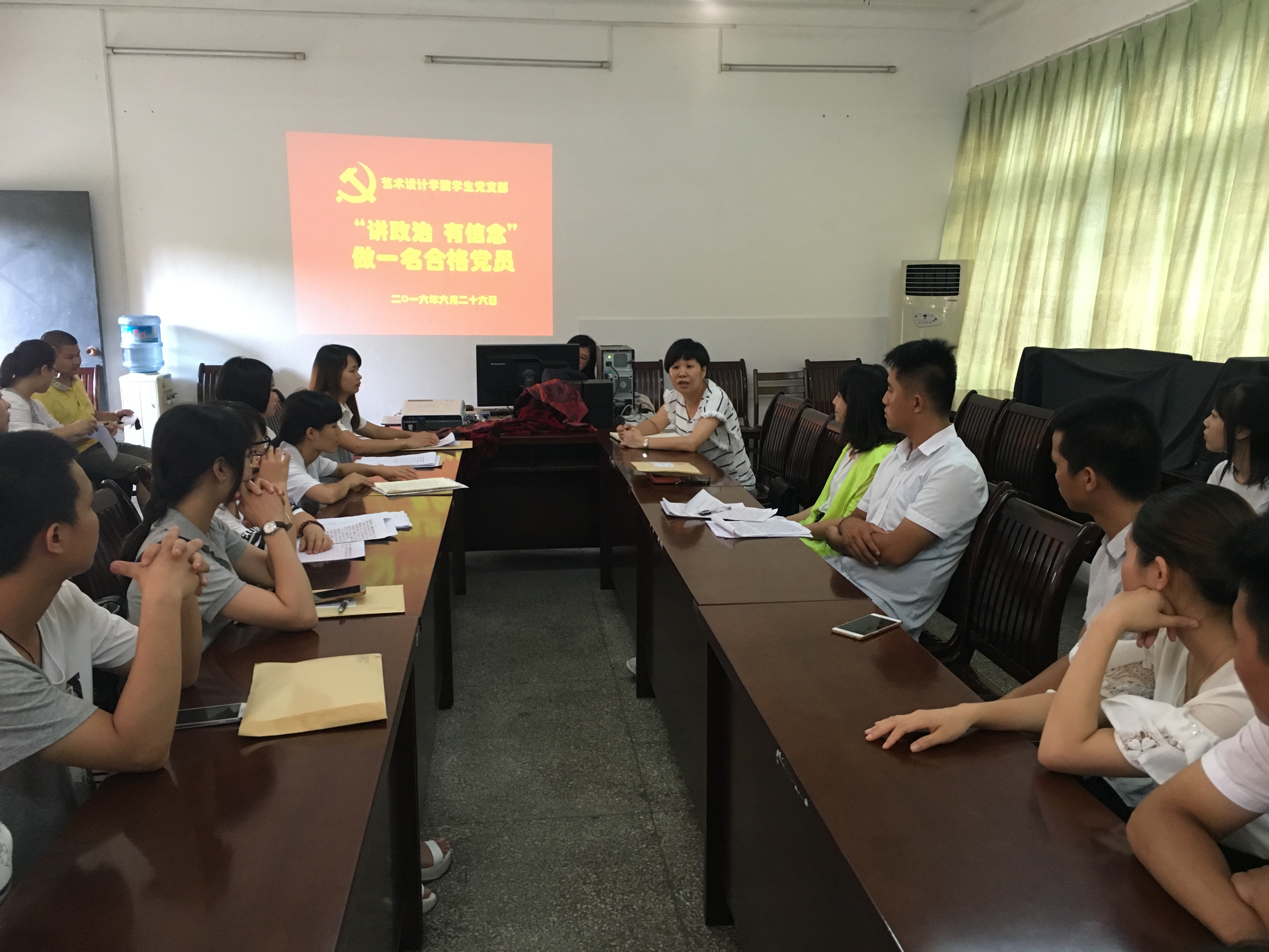 新闻网消息(艺术设计学院/白兰)6月26日,艺术设计学院党支部在艺术校区1栋203会议室召开预备党员转正会议。学院党总支书记王慧出席,参加会议教师党员和学生党员共8名,预备党员23名。