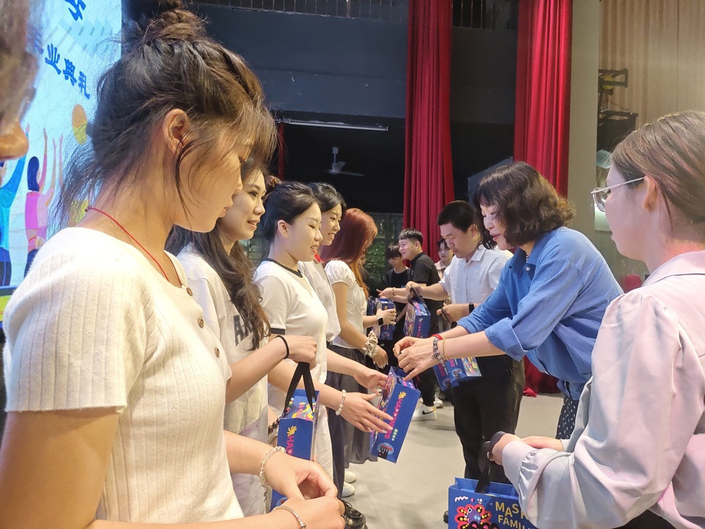 典礼现场还举行了学生代表向教师代表献花、学院领导为优秀毕业生颁发毕业礼物等环节,毕业生们带着师长的嘱托、同学的祝福,从这里启航,奔赴各自的远方,在未来的人生道路上,以艺术为笔,以热爱为墨,书写属于自己的精彩篇章!