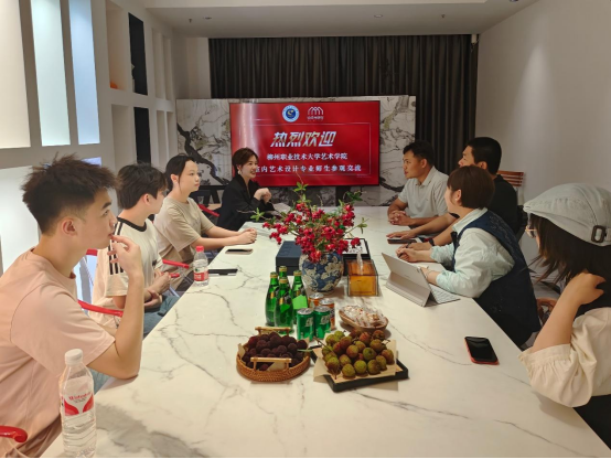 在与广西拾柒号建筑装饰工程有限公司的座谈会上,设计总监张春春展示了企业在软装设计、专业照明解决方案及高端木作家具定制等核心业务的关键环节和最新成果,并分享了典型的实际项目案例,围绕设计理念、材料运用、施工工艺把控、项目全流程管理等内容为师生带来了一堂生动的“行业实践课”。室内艺术设计专业负责人牟旭结合专业背景、人才培养、课程体系设置展开交流,她指出:“校企双方拟共建对接市场需求的全案设计、软装设计、照明设计的教学案例资源库,并邀请企业导师参与教学实践项目指导,共同培养符合市场需求的创新型高技能人才?!币帐跹г焊痹撼ね踔鞠1硎荆骸吧钊胄幸狄幌撸私庾钋把氐牟牧?、技术和市场需求,是提升专业建设、优化人才培养方案的必由之路。此次调研收获丰硕,新中源陶瓷的新工艺、新材料代表了产业升级的方向,拾柒号装饰在软装、照明、木作设计等领域的专业深度为室内艺术设计专业的专业建设、人才培养、实践教学改革提供了宝贵的一线经验。”