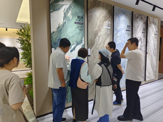 在柳州新中源陶瓷,营销中心总经理王利存详细介绍了行业创新突破的智能材料产品“AI石”的研发理念、智能特性及其在高端空间设计中的应用前景。师生通过近距离接触新材料、新工艺、新技术,全面了解当前室内设计领域的最新趋势、材料革新与关键技术环节,为优化专业课程设置、强化学生在装饰材料应用领域的实践教学环节提供重要参考。