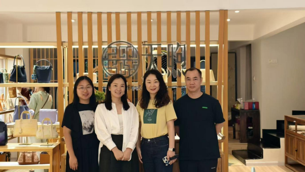 一行人首站走进广州潮艺贸易有限公司旗下国风箱包品牌PMSIX天煦。在品牌设计总监张志芳的热情引领下,众人参观了企业研发中心与品牌直播中心。张志芳介绍,PMSIX天煦以“让传统文化焕发时尚新生”为使命,深挖五千年历史底蕴与五十六个民族文化精髓,将芍药、牡丹等传统元素融入箱包设计,通过创新工艺,打造出兼具文化韵味与现代审美的箱包产品,为独立女性开辟全新时尚视角。