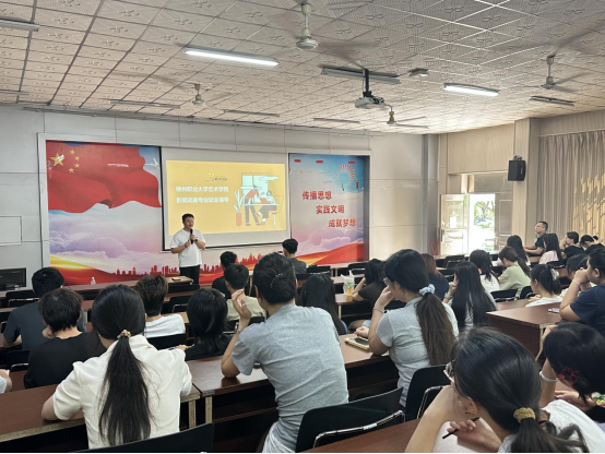 新闻网消息(文、图/艺术学院 白兰)准确把握AI时代行业态势,提升学生就业竞争力,202581日下午,艺术学院在社湾校区思贤楼101报告厅举办影视动画专业2026毕业生就业指导讲座。本次讲座特邀广西聚禾数字传媒科技有限公司总经理向才桂担任主讲,2023影视动画专业学生110人参加。