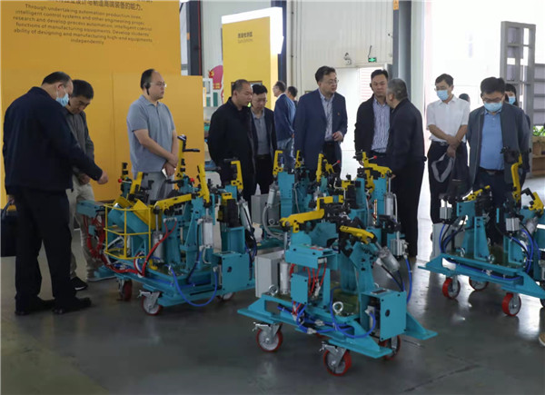 调研团首先在我校官塘校区进行实地考察,参观了上汽通用五菱智慧汽车培训中心、上汽大众广西培训中心、柳工—柳职院全球客户体验中心、工程实践中心、工业机器人培训中心、机电学院优秀人才工作中心、柳州螺蛳粉产业学院和匠心书院??疾焱瓯虾笤赥1-D201会议室召开座谈会,就我校产教融合及课程思政建设进行交流讨论,会议由冉福松主持。