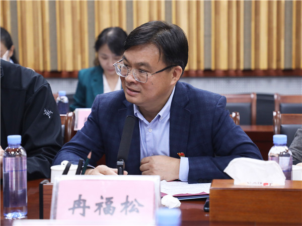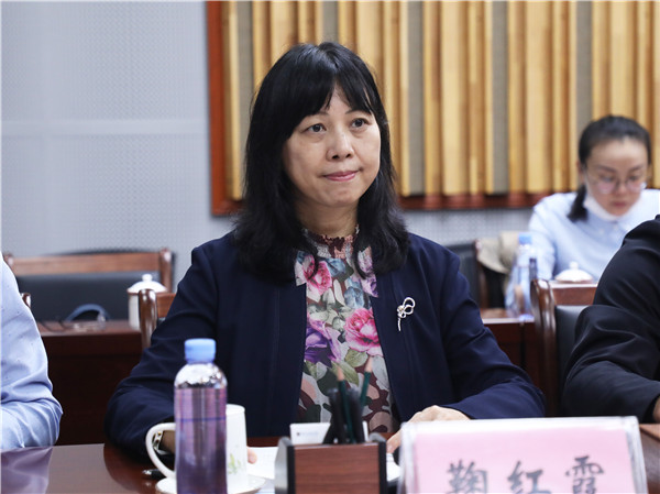 会上,鞠红霞就我校的教育教学情况、课程思政建设情况、国际办学情况等进行了简单的汇报和交流。调研团对我校的育人成效和办学特色给予了高度评价,并就相关工作展开了交流。