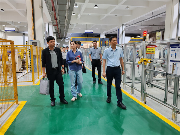 调研组首先参观了我校官塘校区各个重要区域,包括柳州螺蛳粉产业学院、智能制造研究院、工业机器人实训中心、工程实践中心、智能制造赋能中心、上汽通用五菱智慧汽车培训中心、上汽大众培训中心、全球客户体验中心等区域。我校人事处副处长姚鲲鹏、人事职改科科长牛婷婷陪同调研。