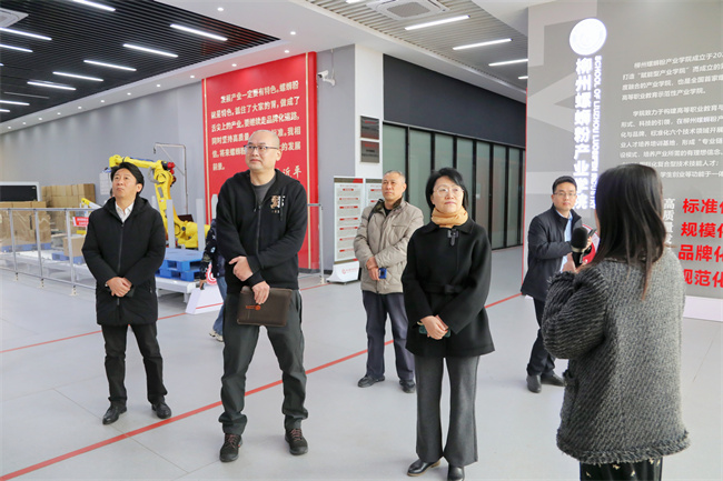 此次调研活动,调研组一行先后参观了柳州螺蛳粉产业学院、智能制造研究院、工业机器人实训中心、智能制造赋能中心以及上汽通用五菱智慧汽车培训中心等区域。在每个考察点,我校瞿凡副校长和相关部门、二级学院负责人向调研组详细介绍了学校在产教融合、职业教育发展等方面的工作成果和经验。