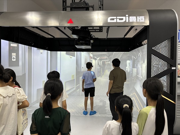 紧接着,孩子们来到了虚拟仿真技术研究院。实训中心严健平老师携手两位充满活力的虚拟现实技术应用专业学生,以他们丰富的经验和热情引领孩子们走进了一个虚拟与现实交织的奇幻世界。戴上VR眼镜的那一刻,孩子们仿佛穿越到了另一个时空,亲身体验了虚拟现实技术在多个领域的广泛应用。他们与虚拟世界中的事物互动,感受着科技带来的震撼与惊喜,也更加坚定了探索未知、追求梦想的决心。