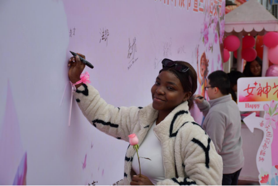 LZPU international students rode the waves, showcasing the charm of diverse cultures. Under the guidance of professional coaches, they experienced water sports such as sailing and kayaking, bravely challenging the waves, as laughter and cheers filled the air. A cheerful French song, accompanied by a playful dance, further highlighted the brilliance of women. Joyce (Chinese name: Mai Wen) from Cameroon sent festive wishes to all female friends in French after singing the song.