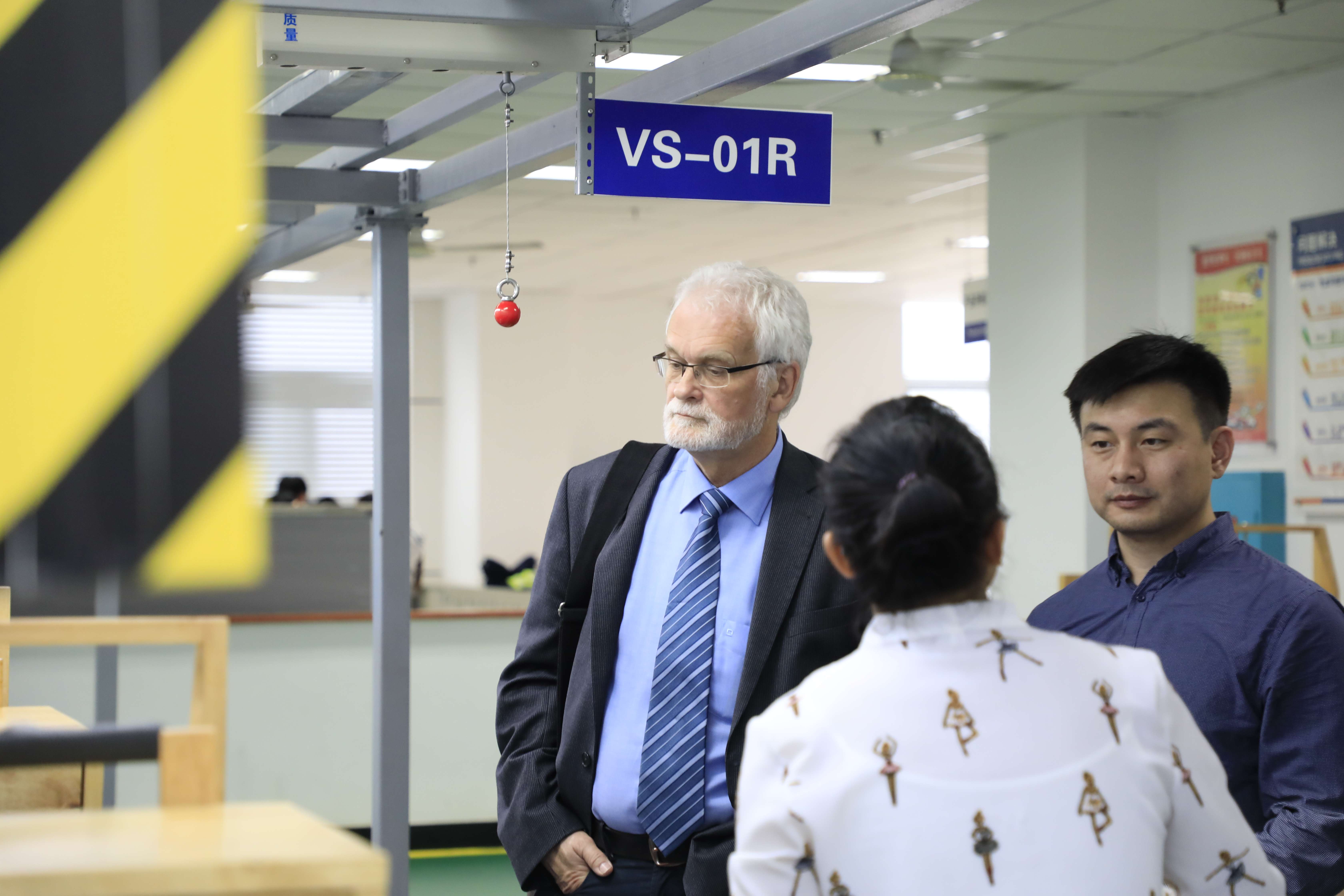 19日,在鞠副校长等人员的陪同下,比尔申克先生一行先后参观了我校的官塘校区和社湾校区,来自德国的客人们对我校的校园建设、综合服务能力以及柳工-柳职院全球客户体验中心、工业机器人实训中心、先进制造实训工厂、ICT行业创新基地等表示赞赏和印象深刻。在工业机器人实训中心,客人们还实地认真地旁听了一堂实训课。