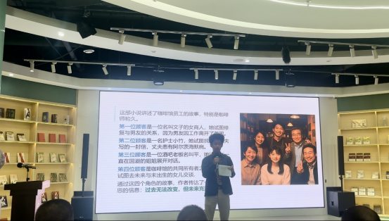 印尼男孩志龙以饱满的热情向大家分享了日本作家川口俊和的著作《在咖啡冷掉之前》,他声情并茂地讲述了在这家能穿越时空的咖啡馆里所发生的几个温情故事,同时还设计了互动环节,让现场观众身临其境感受“时空穿越”,并回忆自己最想弥补的遗憾。“如果我穿越回到那一天,我会请我的初恋女友喝一杯咖啡,勇敢地向她表达我的真实感受?!蓖ü殖」壑诘恼媲榱髀?,志龙总结道“就像咖啡要在温热时品味,有些话要及时说出口,要珍惜现在、珍惜身边的人,别让现在留下遗憾?!毕殖≌粕锥?。