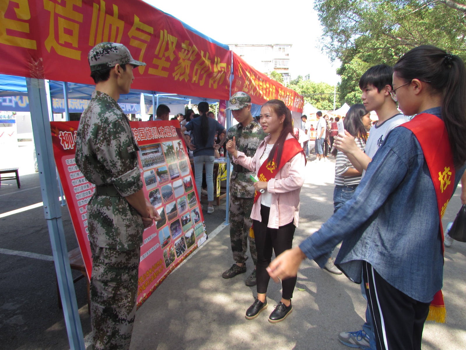 第一阶段是10月13-14日,在坡下A区行政楼旁,各级学生工作组织招新,包括校团委校学生会、校志愿者总队、校国旗队、校大学生艺术团、易班工作站、新媒体中心、学生自主管理委员会以及各二级学院学生会等组织。
