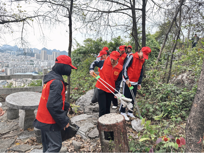 活动现场,红色马甲跃动着,化作春日最鲜亮的色彩。志愿者们跟随柳州市江滨公园管理处工作人员的步伐,认真清理垃圾,让公园的草地焕然一新,如一张天然的“绿地毯”。铁锹与泥土的碰撞声里,新翻的泥土蒸腾着大地的心跳;扶苗培土时,手套上沾染的不只是春泥,更是生命的温度;浇灌绿植时,指尖传递的不只是清水,更是生机的活力?;忧屡嗤良?,种下鸭脚木、鸢尾绿植6000余株,完成绿地景观提升改造300余平方米,并清理了白岩山小游园两座山体2000余米登山台阶沿线的卫生。