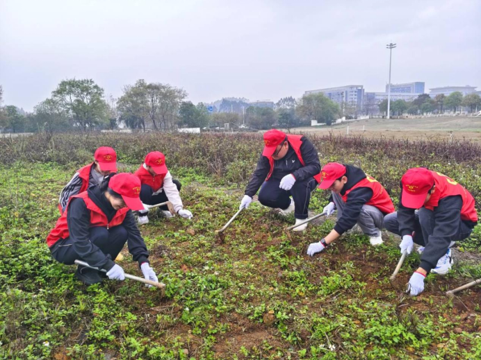 新闻网消息(文/校青年志愿者服务总队 李灵翠 图/校青年志愿者服务总队 李灵翠、陈金燕)在第46个植树节与“学雷锋月”交汇之际,为增强广大同学的生态环保意识,践行绿色发展理念,校青年志愿者服务总队于2025年3月12日上午,在官塘校区青田劳动园组织开展了“除草护绿 以劳育美”除草护绿活动。