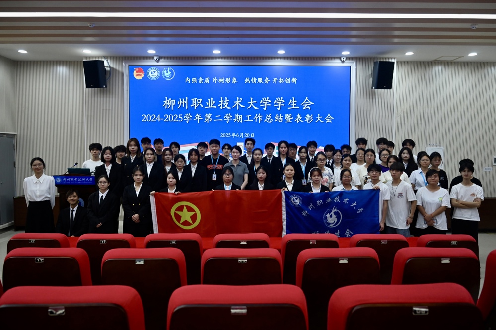 新闻网消息(文/校学生会 蒙如梅 陈凯焱 图/校学生会陈云婷 陈凯焱 马柯达)为全面总结学年工作成果,表彰先进典型,凝聚团队力量,激发责任担当,6月20日,校学生会于官塘校区T4-D401报告厅召开2024-2025学年工作述职暨表彰大会。校团委覃露颖老师出席会议,校学生会全体成员及各团学组织代表齐聚一堂,共同回顾成长足迹,展望奋进征程。