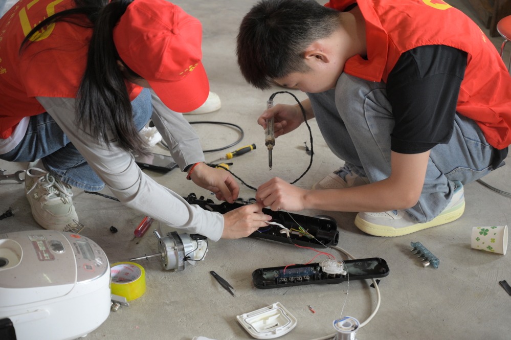 实践团深知乡村生活的不便,家电维修难题常常困扰着村民。为此,团队特别组织了家电维修志愿服务活动。成员们凭借在学校所学的专业知识,携带专业工具,在高定村设立了临时维修点。成员们认真检查每一个故障点,仔细分析问题原因,熟练地进行拆卸、焊接、组装等操作。在维修过程中,成员们还耐心地向村民讲解家电的日常保养和简单故障排查方法,提高村民的家电使用和维护能力。