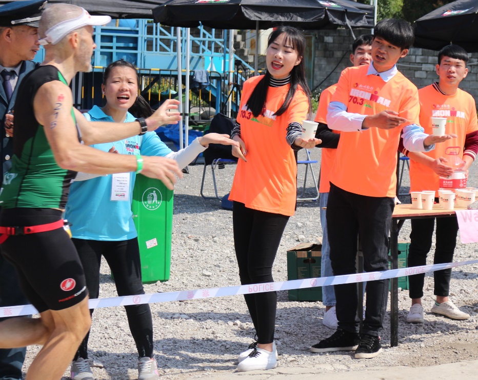 来自艺术设计学院学生会的覃铭彬同学作为跑步赛道指引组的小组长,全天奔波在跑步赛道上,为流动岗位的各志愿者送去物资,并及时交换服务信息。当天午后,太阳很大,有些志愿者们脸上被晒得通红,但还是坚守在各自的岗位上,践行“奉献、友爱、互助、进步”的志愿者精神。在铁人三项赛比赛期间,我校志愿者按照团市委要求,圆满完成了各自负责的志愿服务工作,得到了大赛组委会和国内外参赛运动员的广泛赞誉,同时也作为运动文化的传播者,帮助更多的中国铁人三项爱好者体验到这项运动的魅力,充分展现了我校学生的良好精神风貌。