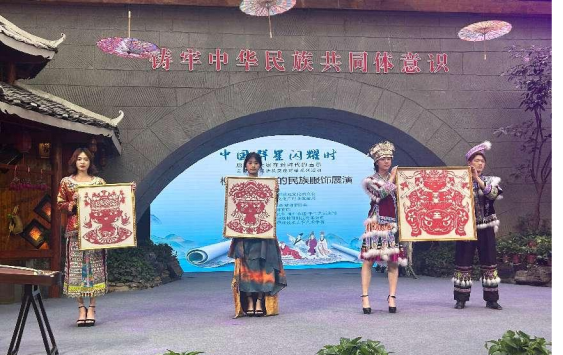 模特展示非遗作品:剪纸