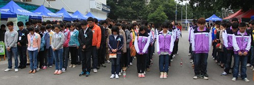 上午十点的开幕式上,全体师生为四川雅安地震遇难者肃立默哀,愿逝者安息,生者坚强!