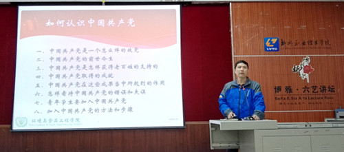 课上,黎副书记介绍了党的基本知识、党的光辉历程、中国共产党为什么获得人民的支持、中国共产党带领全国人民取得的巨大成就、青年学生要积极争取加入中国共产党等内容。介绍了培养和发展学生党员的标准、条件和程序等,帮助学生系统了解党的基本理论和基本知识,端正入党动机,了解和掌握入党的基本程序和要求。