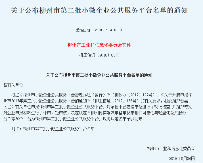 环境与食品工程学院根据《柳州市小微企业公共服务平台管理办法(暂行)》(柳政办〔2017〕127号)和《关于开展申报柳州市2017年第二批小微企业小微企业公共服务平台的通知》(柳工信通〔2017〕156号)精神,积极参与申报,并接受柳州市工信委组织专家对申报材料、公司情况进行评审与现场考察,得到了专家评审组的认可,成为检验检测类唯一入选企业。