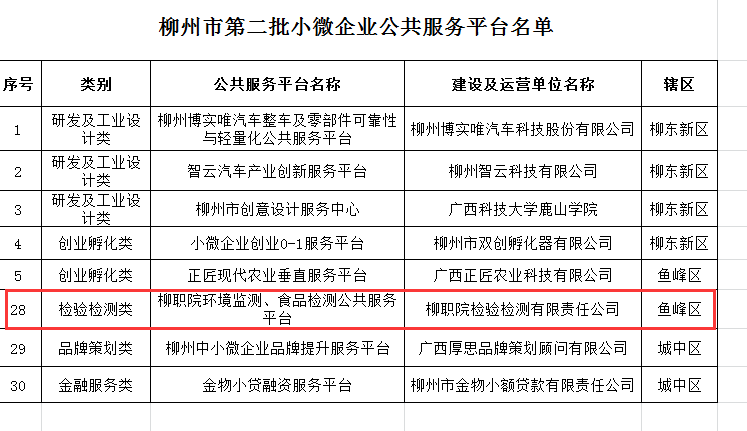 柳职院检验检测有限责任公司获2017年柳州市小微企业公共服务平台认定