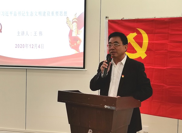 (文/环食学院 秦凯 图/环食学院 覃俊达)2020年12月4日上午,校党委委员、副校长王伟同志给环境与食品工程学院党总支部全体党员上了一堂题为《绿水青山就是金山银山——学习习近平总书记生态文明建设重要思想》的党课。