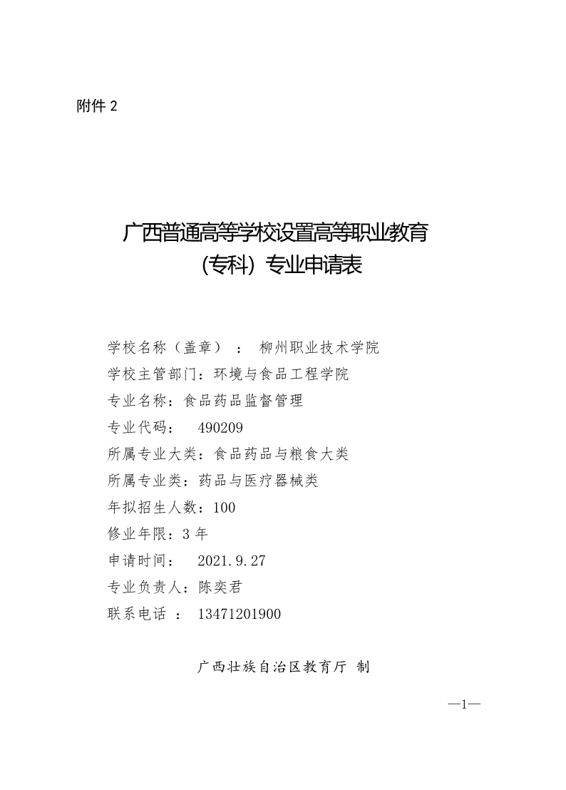 食品药品监督管理-专业申报书