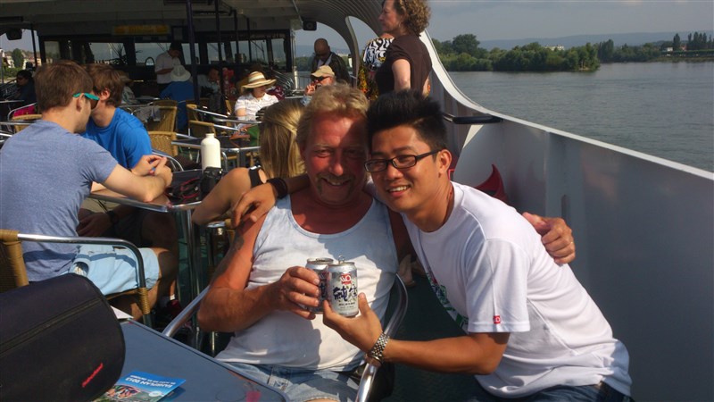 在8月份林福坤获免费十日的德国旅行中,与外国友人合影。
