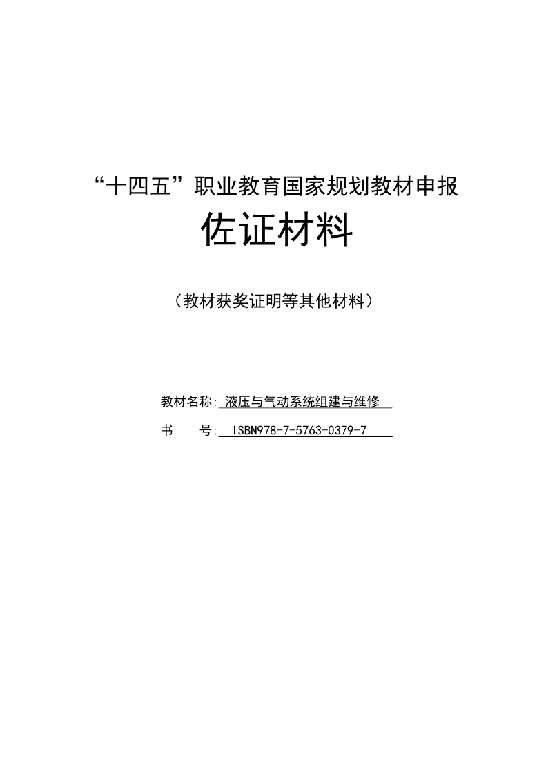 获奖证明等其他材料《液压与气动系统组建与维修》