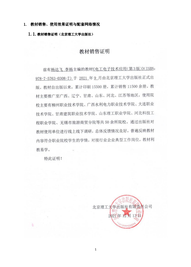 获奖证明等其他材料《电工电子技术应用(第3版)》