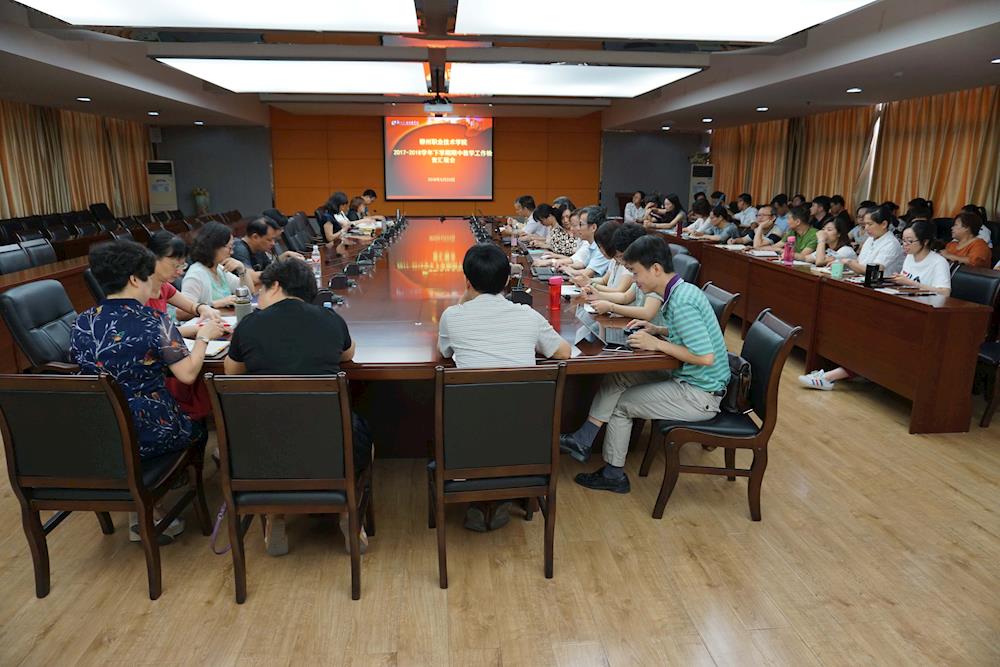 通识教育学院宋小梅副院长汇报了教学工作情况,其中教师教学能力竞赛工作全员参与、取得优异的成绩,积极推进翻转课堂教学模式改革,教师申报数量、试点课程数量、获得示范课数量均在全校最多。