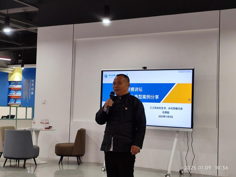 在培训环节,来自哈尔滨师范大学创新创业学院的涂德虎教授、本校的许明教授以及袁诗铭老师组成了强大的师资阵容。涂德虎教授凭借其丰富的创新创业教育经验,深入浅出地为学生们剖析创新理论前沿,拓宽了学生们的学术视野;许明教授紧密结合学校实际与行业需求,将实践案例融入教学,传授创新实践技巧,助力学生们提升动手能力;袁诗铭老师则聚焦于创新思维的启发与培养,引导学生打破常规,激发创意火花。最后的劳模讲堂,三江布央村支书、乡村劳模代表石燕能,为同学们分享了乡村振兴创业典型案例。