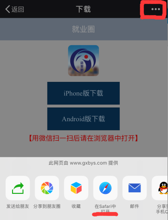 注意:使用微信扫一扫时,出现下载界面后,请在浏览器中点击打开。然后再次安装。如下图1.2苹果端,1.3安卓端所示: