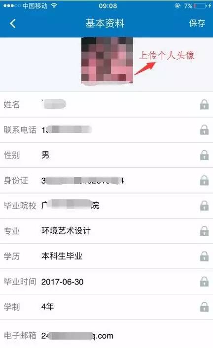 进入个人中心后在界面最上方“点击修改完善个人信息”,核对自己的个人信息。正确无误后。点击“办理报到证”。如图3.2,3.3。