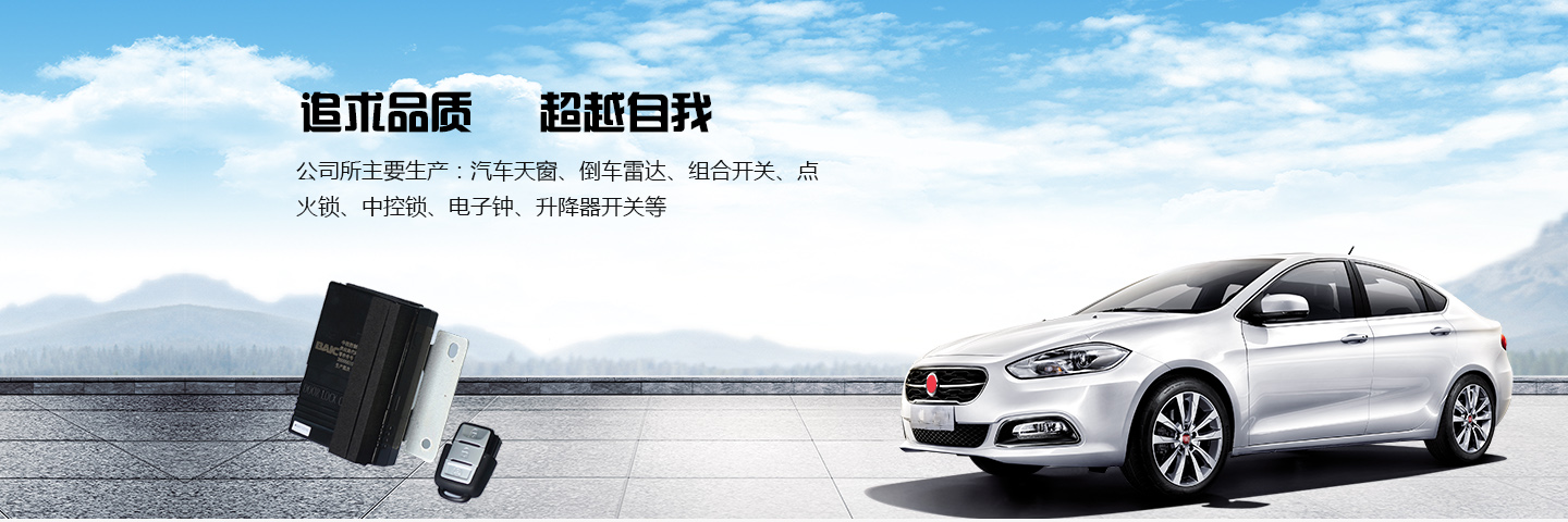 公司所主要生产:http://baike.baidu.com/view/1814704.htm汽车天窗、倒车雷达、http://baike.baidu.com/view/3086162.htm组合开关、http://baike.baidu.com/view/6014461.htm点火锁、中控锁、http://baike.baidu.com/view/2491481.htm电子钟、升降器开关等。公司多年来荣获各大汽车厂的质量优秀单位和A级企业,并获得浙江省、市、区名牌产品和省、市高新技术企业,在国内同行业中有较高知名度。