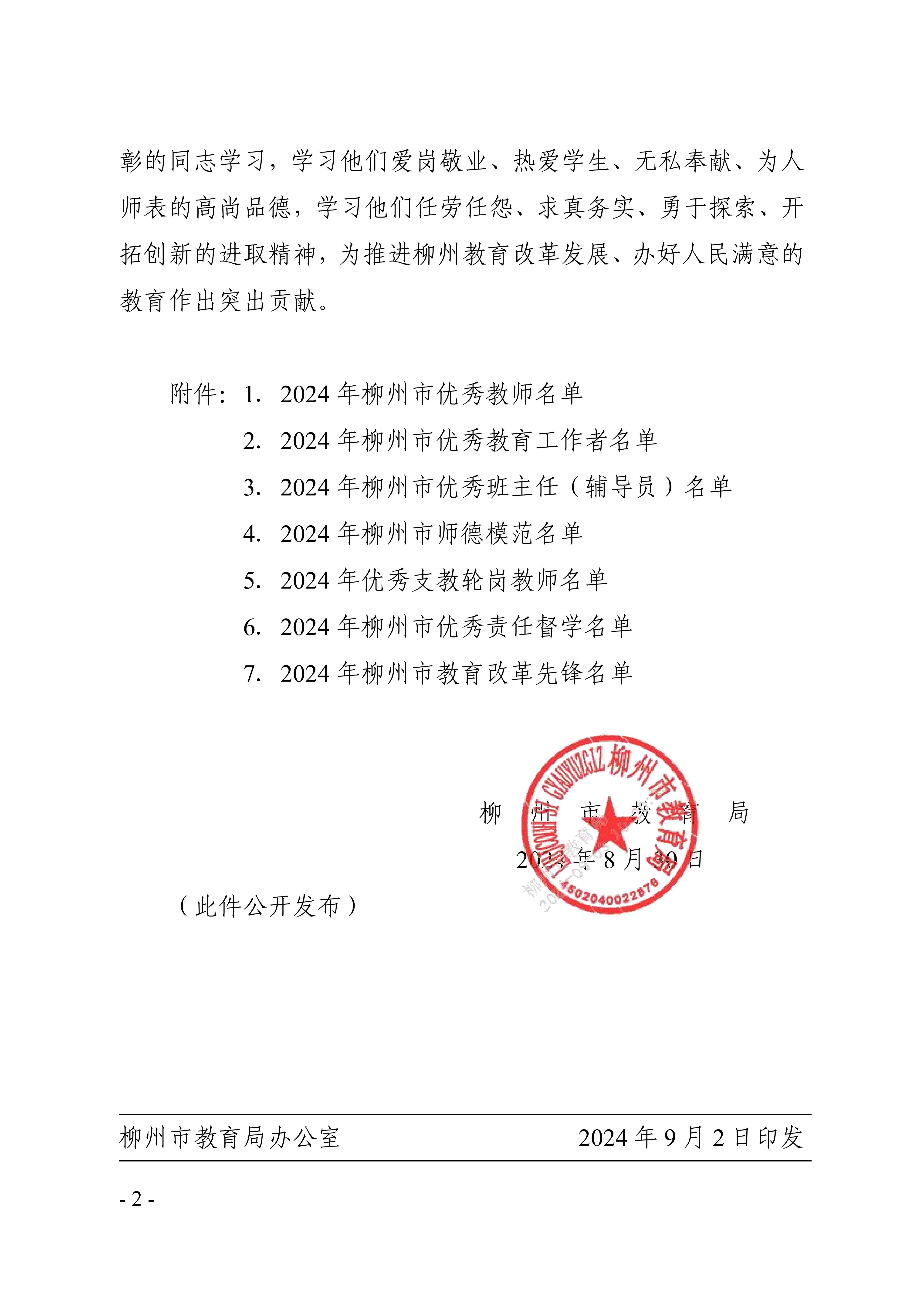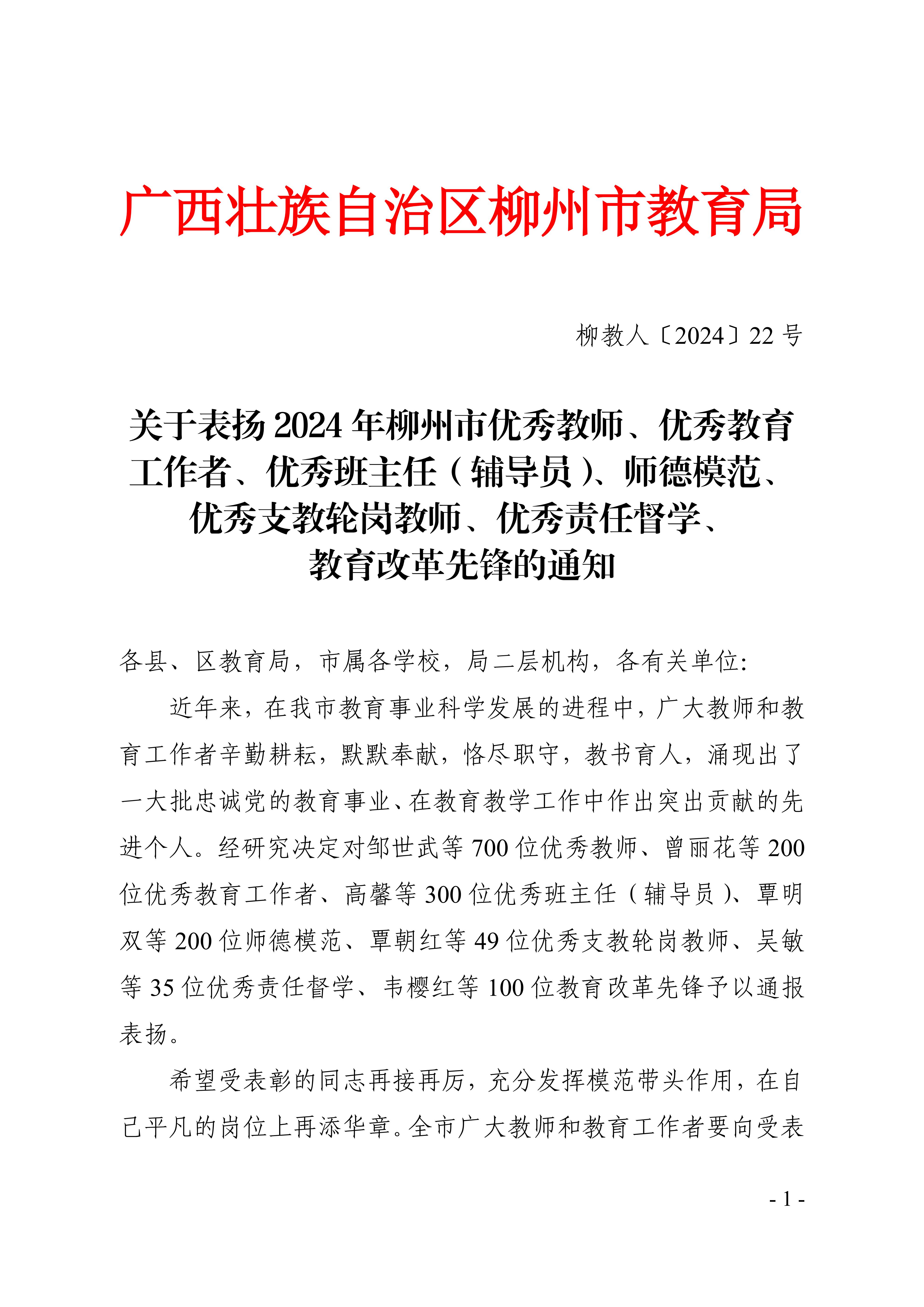 喜讯!热烈祝贺我校多名教师获评“2024年柳州市优秀教师、优秀教育工作者、优秀辅导员、师德模范、优秀支教轮岗教师、教育改革先锋”