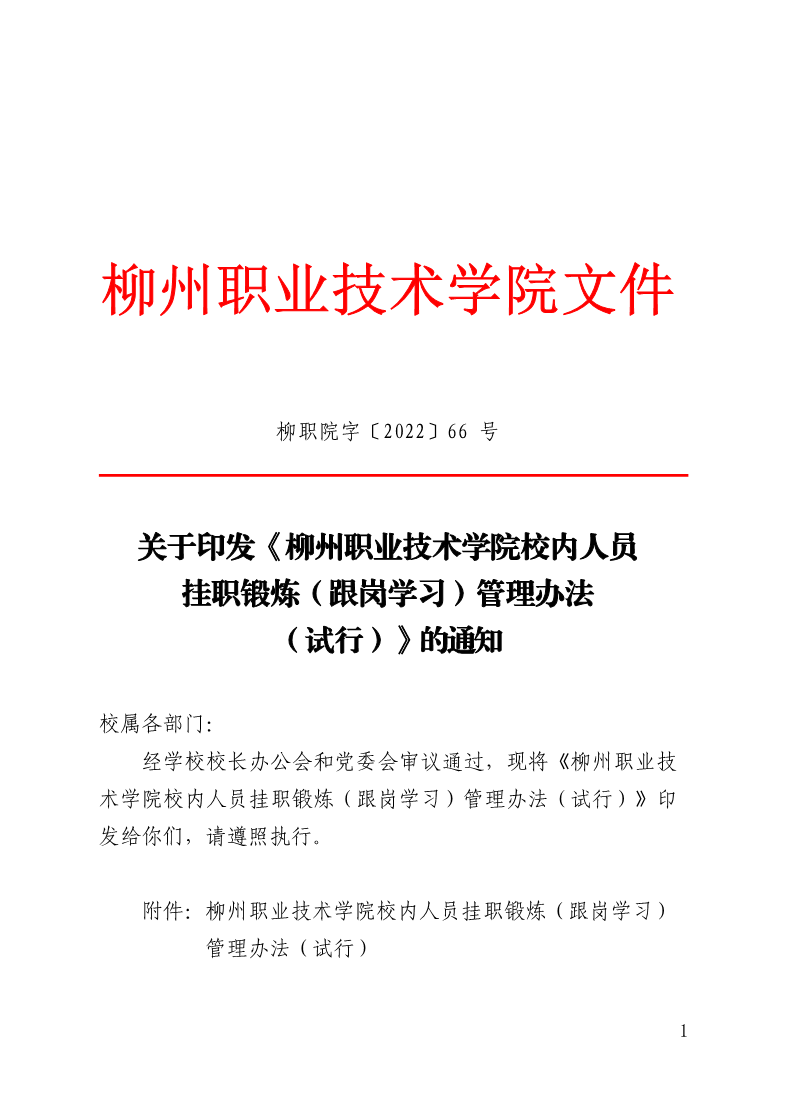 柳职院字〔2022〕66 号 关于印发《柳州职业技术学院校内人员挂职锻炼(跟岗学习)管理办法(试行)》的通知 来源: 发布时间:2024-05-16 11:23:38 浏览次数: 次 【字体:小 大】 终审:教职工发展中心 分享到: 【打印正文】
