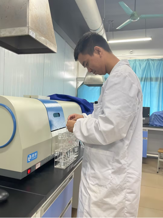 梁邢安博士在实验室做课题研究